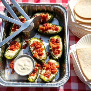 - Pre-Bake: Prepare the potato skins in advance by baking the potatoes and filling them with toppings at home. Then, simply reheat them on a grill or portable oven at the tailgate.